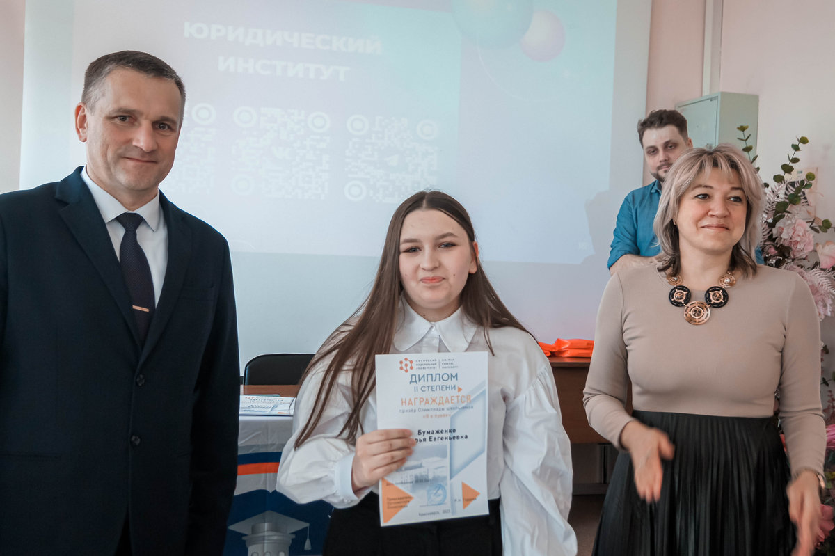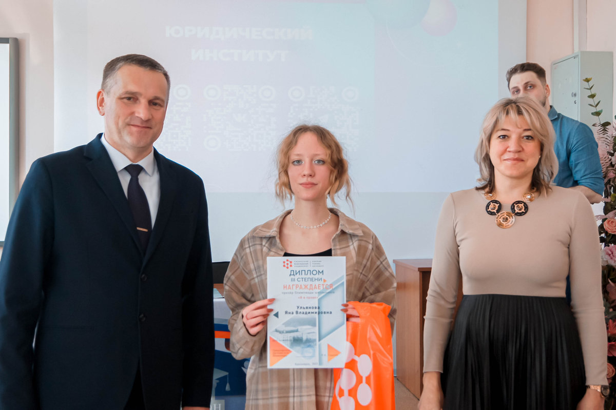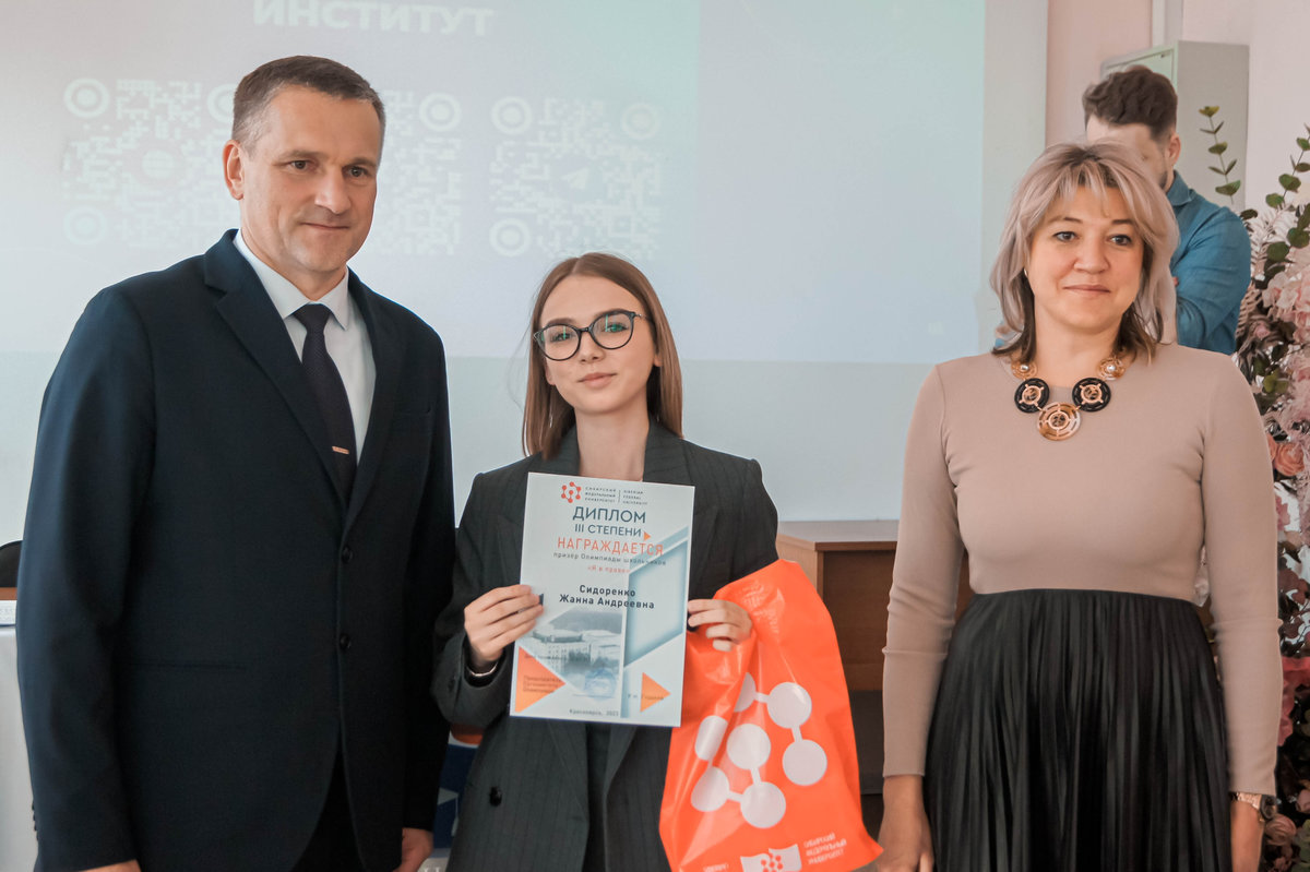 Победители и призеры Олимпиады школьников «Я в праве» получат дипломы I, II и III степени и будут иметь возможность получить дополнительные баллы при поступлении в Сибирский федеральный университет на обучение в 2026 году в соответствии с Правилами приема в СФУ на 2026 год.